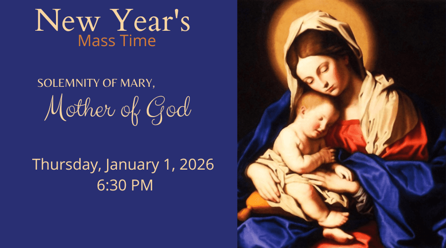 Thursday, January 1, Solemnity of Mary, Mother of God Mass, 6:30 pm (St. Robert Masses: 8:30 am & 7 pm)