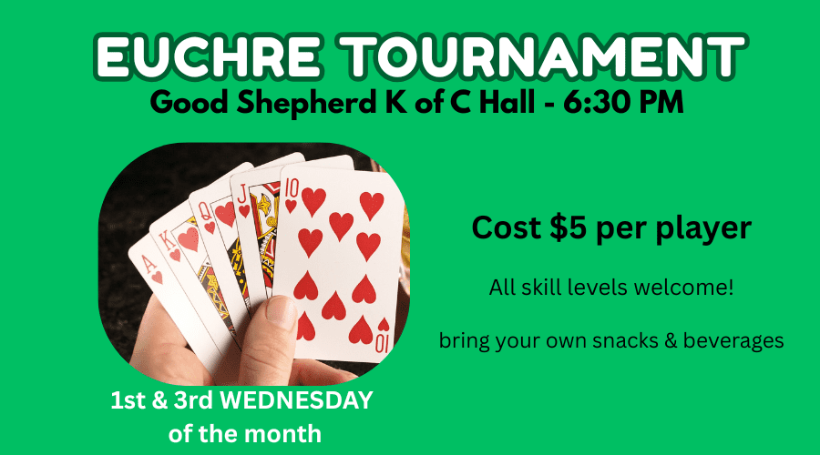Wednesday, January 21, Euchre Tournament in Knights Hall, 6:30 pm